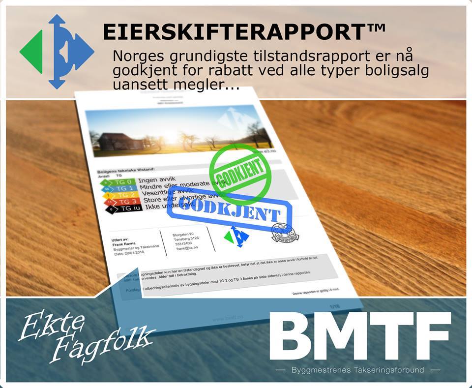 Ved salg av bolig bruker vi BMTF sin eierskifterapport som er foretrukket av flere meglere